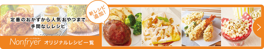 料理専門家が考案したレシピブックには、エアフライヤーで脂肪を減らして調理できる揚げ物を幅広く掲載しています。エアフライヤーでの多用途な調理方法を反映したレシピもご紹介しており、グリルや焼き、さらにはローストにより、よりヘルシーに短時間で簡単に調理することができます。